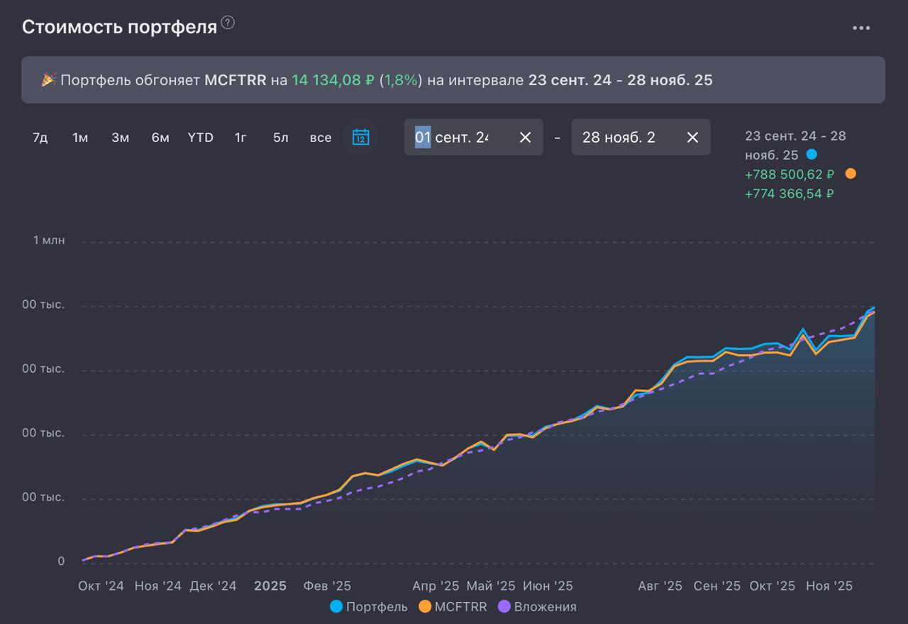 — Я продолжил челлендж и, судя по всему, его завершил! Посчитаем в ближайших постах. В ноябре в портфель добавил аж 64 тысячи рублей.