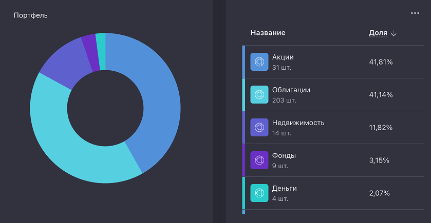 Скрин из сервиса учёта инвестиций