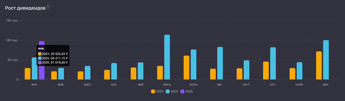 Всего же пока что в 2026 году получил и реинвестировал 97 тысяч рублей. Дальше — больше! В следующем выпуске февраль.