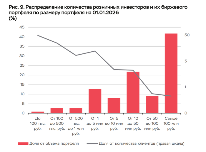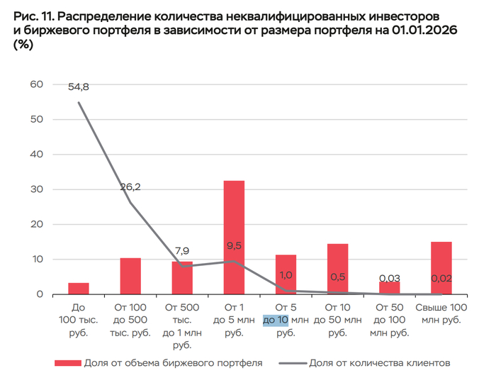Количество розничных инвесторов с портфелем более 10 тысяч с 2022 года выросло в 2 раза.