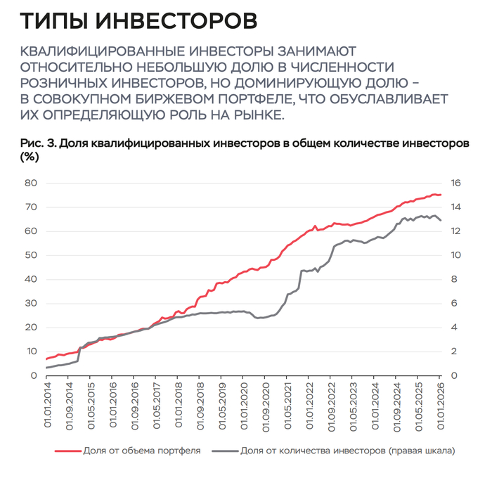 Более 80% объёма торгов проворачивают квалифицированные инвесторы.