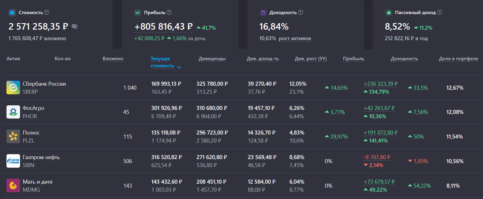 Мой портфель и ТОП-5 акций
