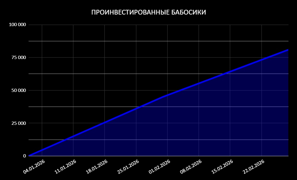 За февраль 2026 пополнения извне (то есть с активно заработанных денег на работе) на счет составили ₽34 500, реинвестирование на данный момент составляет ₽20 407. В общей сложности пока вышло ₽80 907. Вместе с реинвестом планирую приобрести активов минимум на ₽700 000. Двигаемся к этой цели.