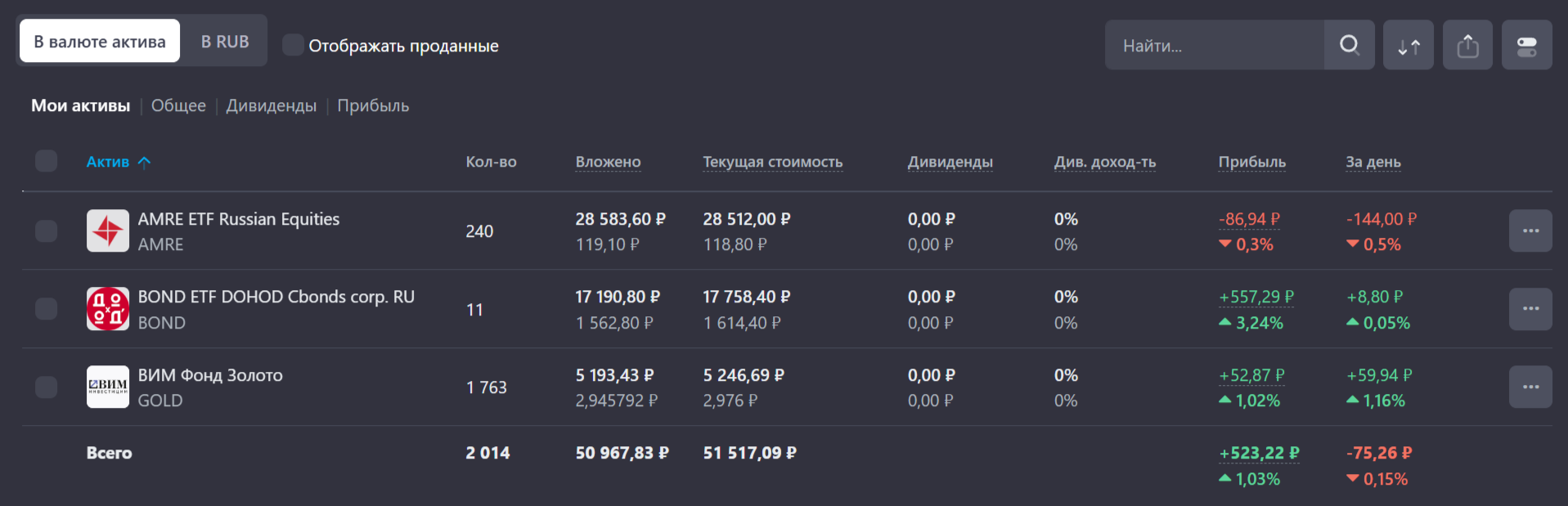 three emoji ВИМ GOLD — купил 574 пая (всего 1763)