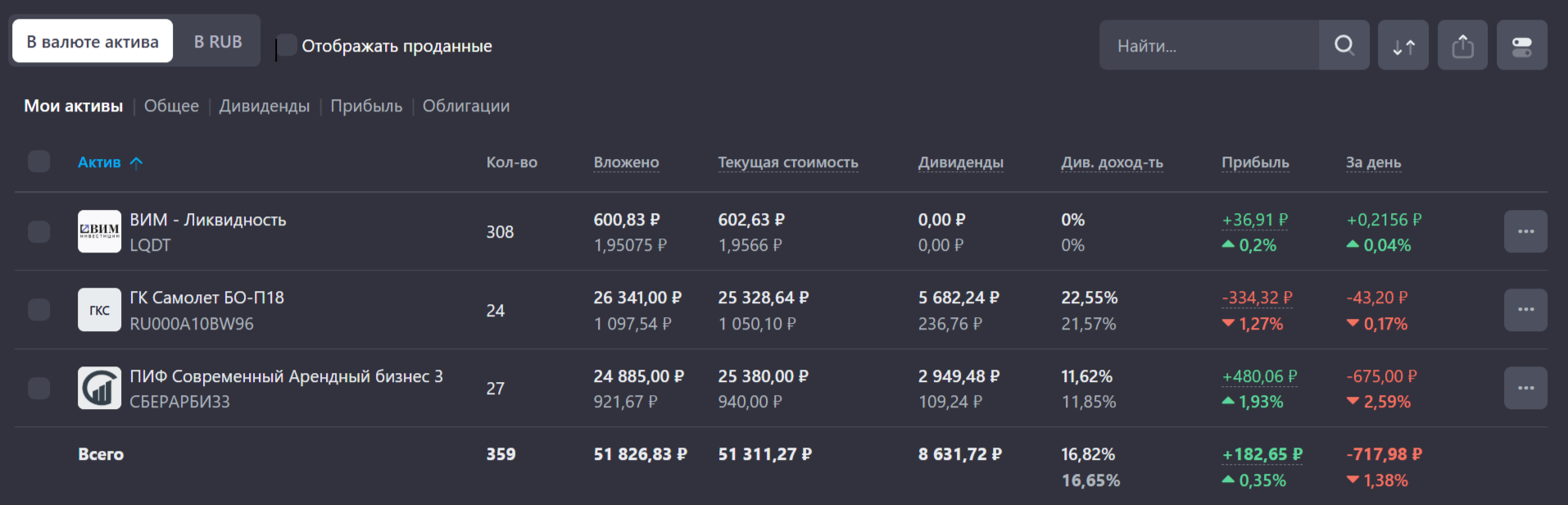 Наполнение портфеля: 50% — ЗПИФ, 50% — облигации, куда лучше давать в долг застройщикам, чем быть им должным. Теперь к активам, которые буду покупать:
