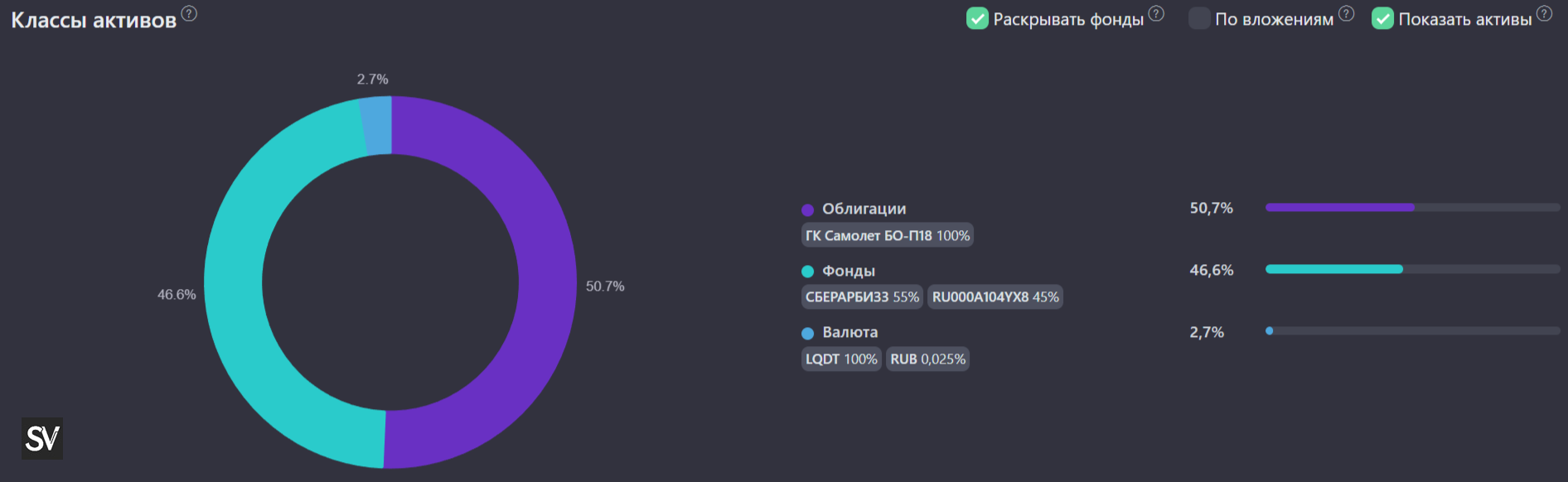 Наполнение портфеля: 50% — ЗПИФ, 50% — облигации, куда лучше давать в долг застройщикам, чем быть им должным. Теперь к активам, которые буду покупать: