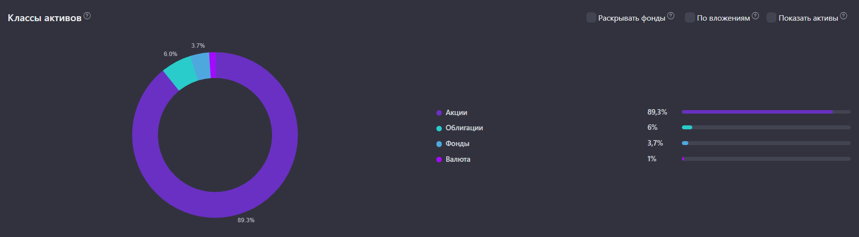 Соотношение классов активов в портфеле: