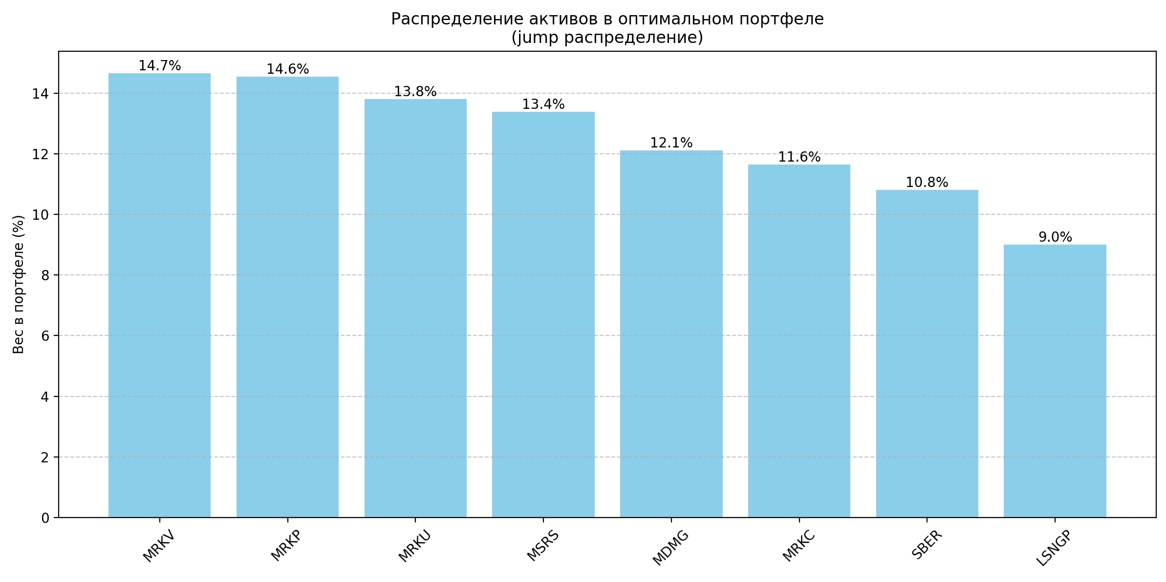 Главное изменение: банковский сектор почти полностью покинул портфель. Из всего финансового блока наша модель оставила только Сбербанк с долей 10,8% — как самый ликвидный и дивидендно предсказуемый банк страны. Всё остальное — за дверью.