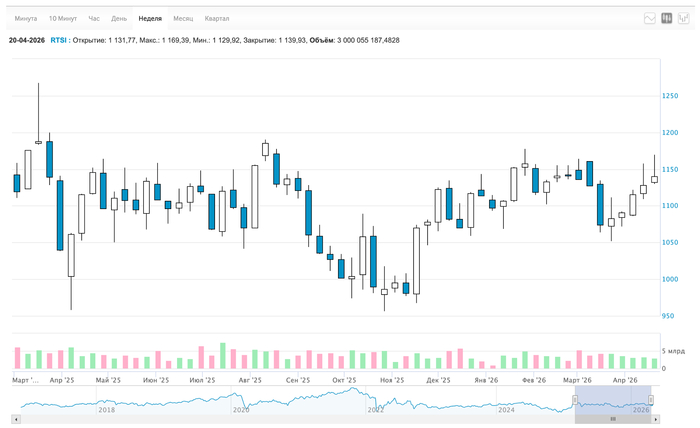 РТС: 1 128 → 1 139. Спасибо укреплению рубля.