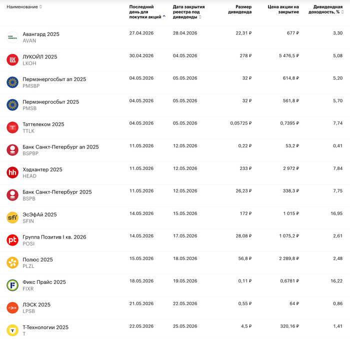 Ближайшие дивиденды: