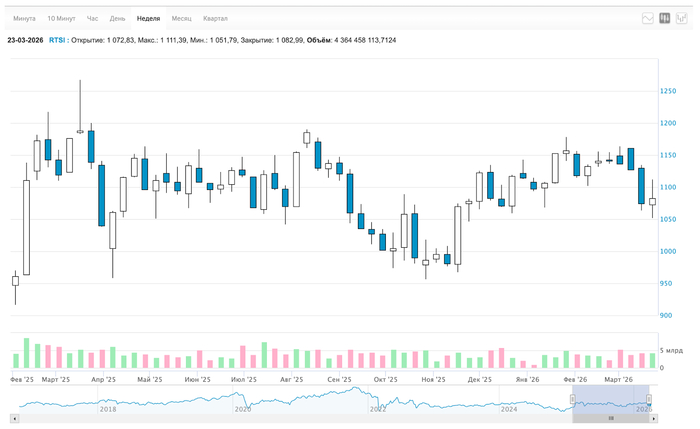 РТС: 1 074 → 1 082. Спасибо укреплению рубля.