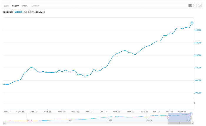 Вечеринка продолжается. Индекс MREDC 341,5к → 345,7к за м². Что там, ипотека доступнее стала или люди из вкладов стали перекладываться в бетон?