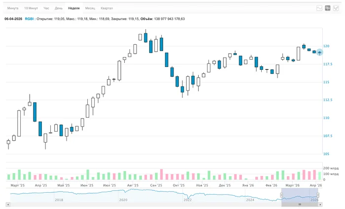 RGBI: 119,0 → 119,1. Практически без изменений. Я продолжаю покупать длинные ОФЗ.
