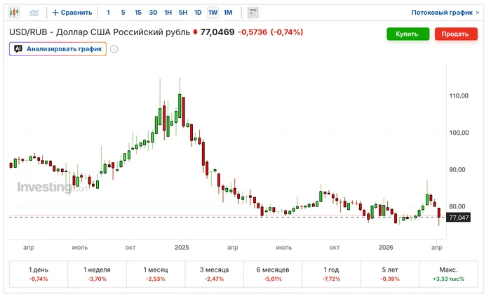 В УК Первая ожидают курс рубля в 2026 году ₽75–85