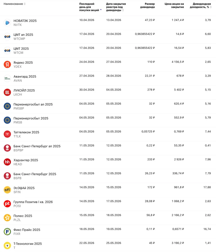 Ближайшие дивиденды: