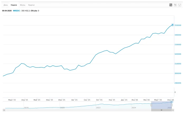 Уже достаточно привычный. Индекс MREDC 348,7к → 350,4к за м². Квартира стоит как горшок золота. Не очень большой, но всё же.