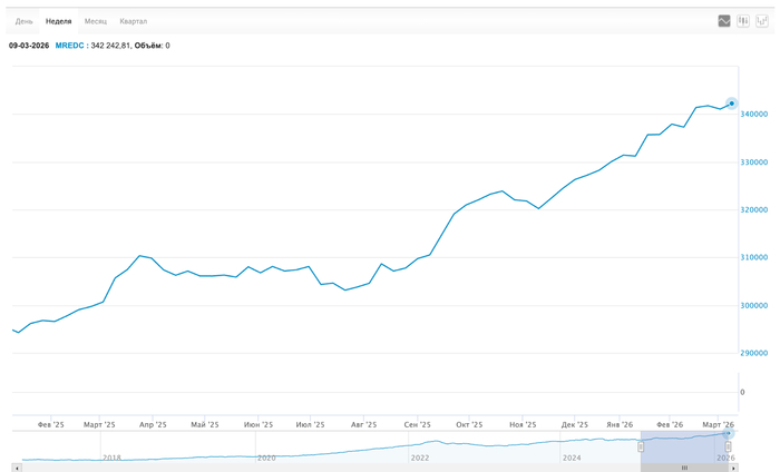 Ну вот и поехали дальше. Индекс MREDC 341,0к → 342,2к за м². Таких высоких цен ещё не было.