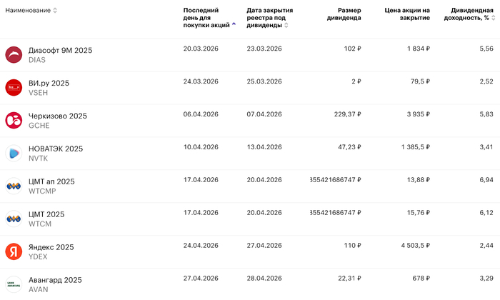 Ближайшие дивиденды: