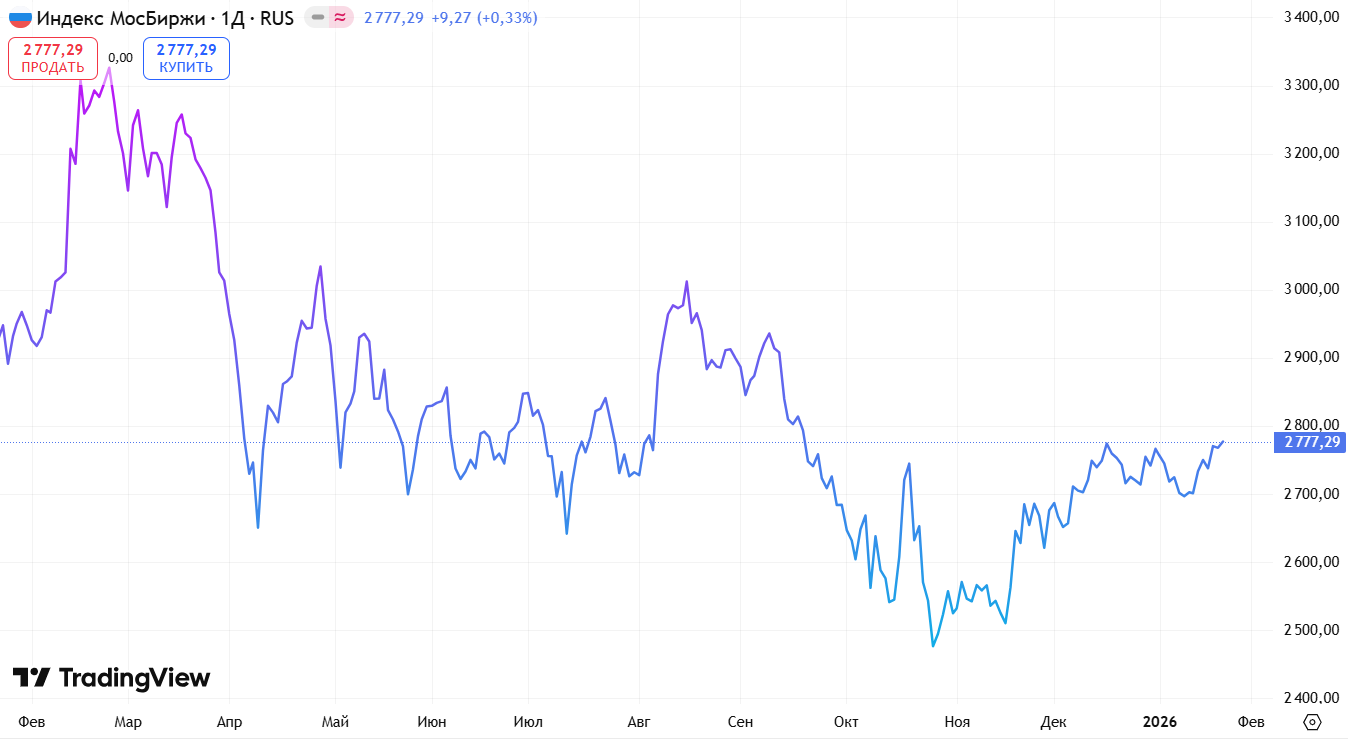 Индекс Московской биржи за неделю незначительно подрос с 2 733 до 2 777 пунктов.