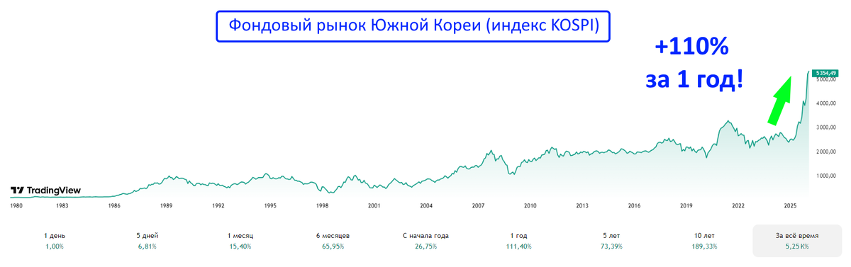 Представьте: в стране политический кризис, импичмент президенту, а фондовый рынок за год не то, чтобы падает — он удваивается. Речь о Южной Корее и её основном индексе KOSPI: