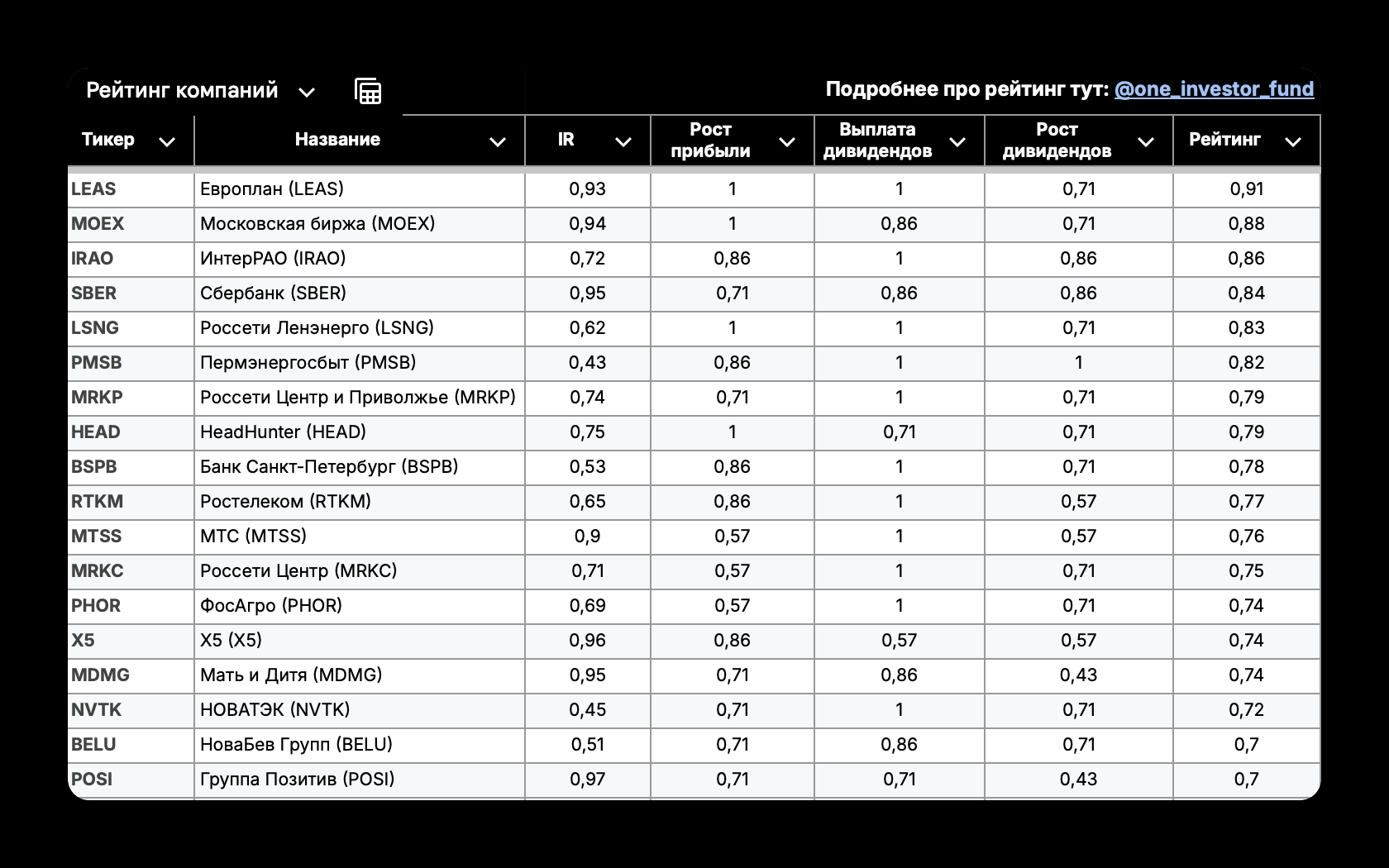 Я подсчитал рейтинг для 100 российских компаний и свел все это в одну таблицу