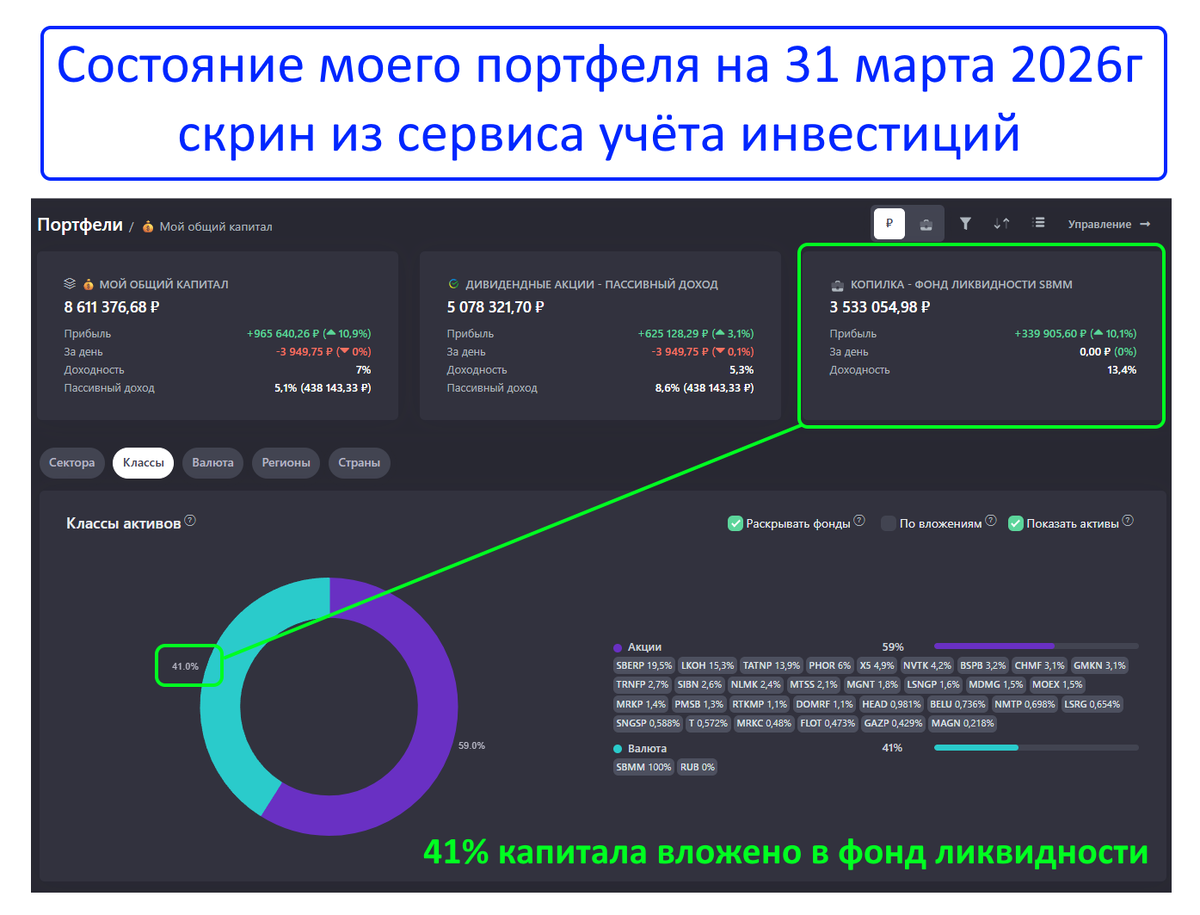 Фонд ликвидности (41%) - я тоже оставлю в портфеле, но крупных пополнений больше делать не буду.