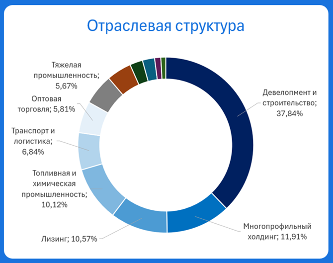 Самая большая доля представлена строительством (38%), мы планируем сократить до 30%. Приняли повышенный риск из-за вложений в Эталон, это топ идея в наших портфелях