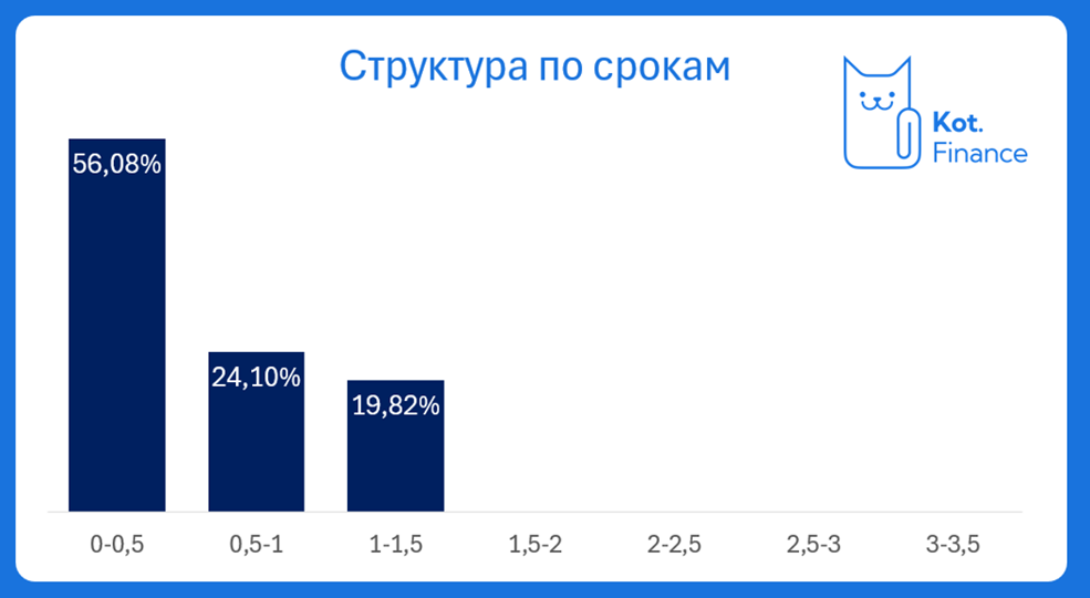 Чтобы дать наиболее стабильный результат, который не зависит от решений по ключевой ставке мы выбираем самые короткие облигации. Сегодня 80% портфеля до года. Это стало следствием решений пройти оферту в бумагах по Брусника2, что позволило заработать чуть больше и на купоне и приростом «тела» облигации. Целевая доля 80% со сроком до полугодия