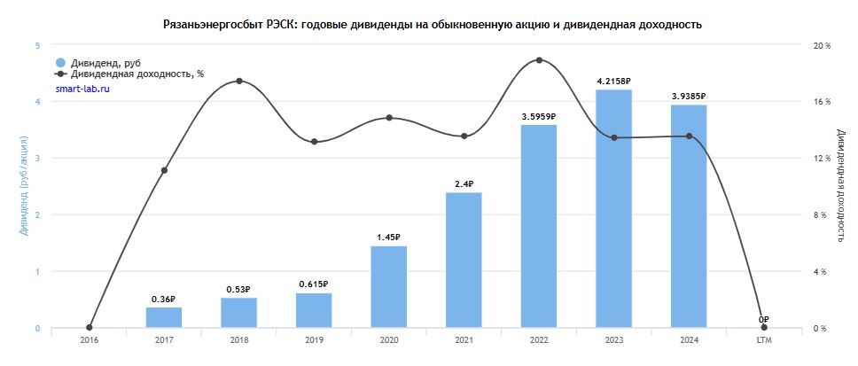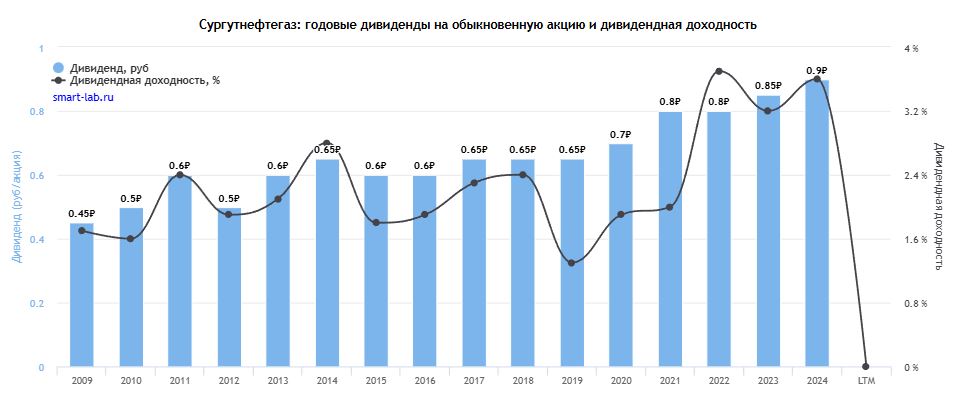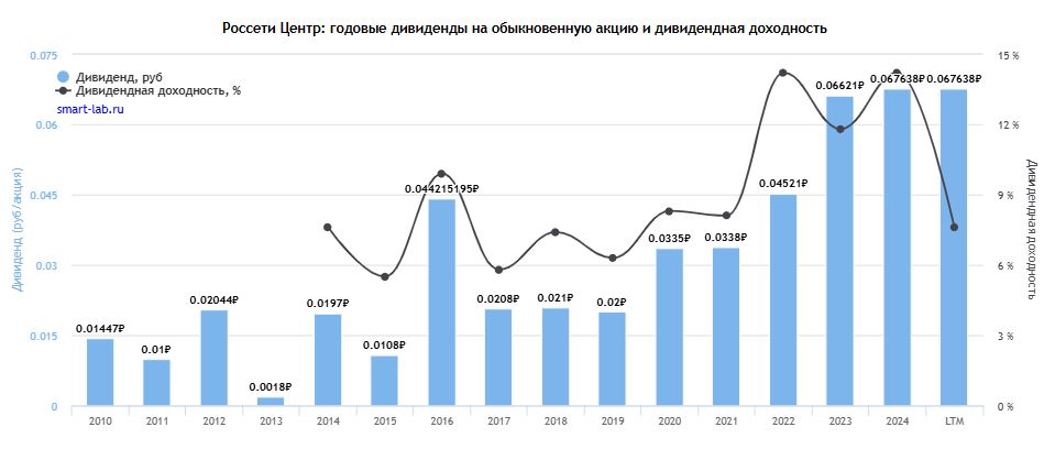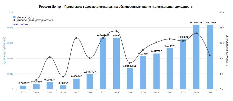 Дивиденды за 2024 год: 0,05 руб. (14,5%).