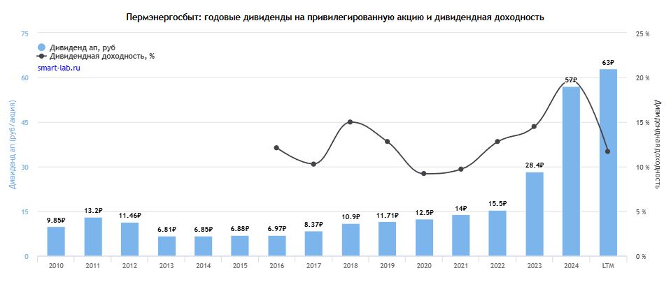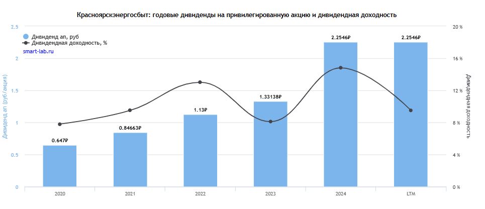 Дивиденды за 2024 год: 2,25 руб. (14,8%).