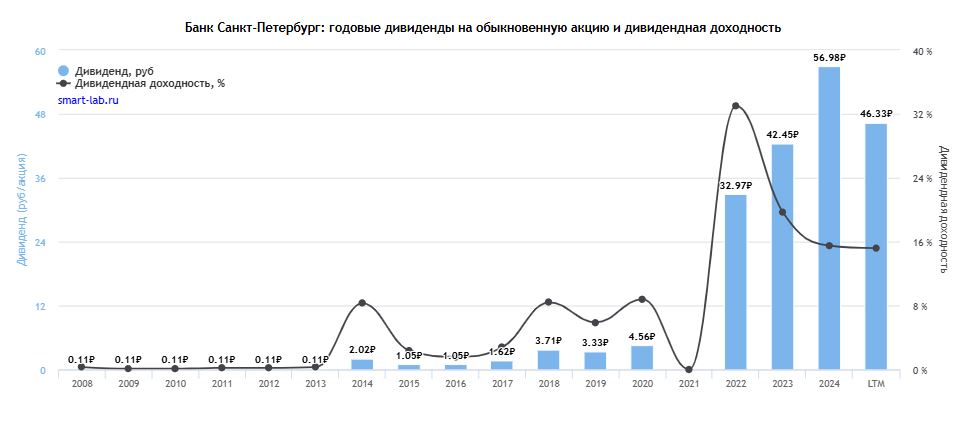 Дивиденды за 2024 год: 56,98 руб. (15,5%).