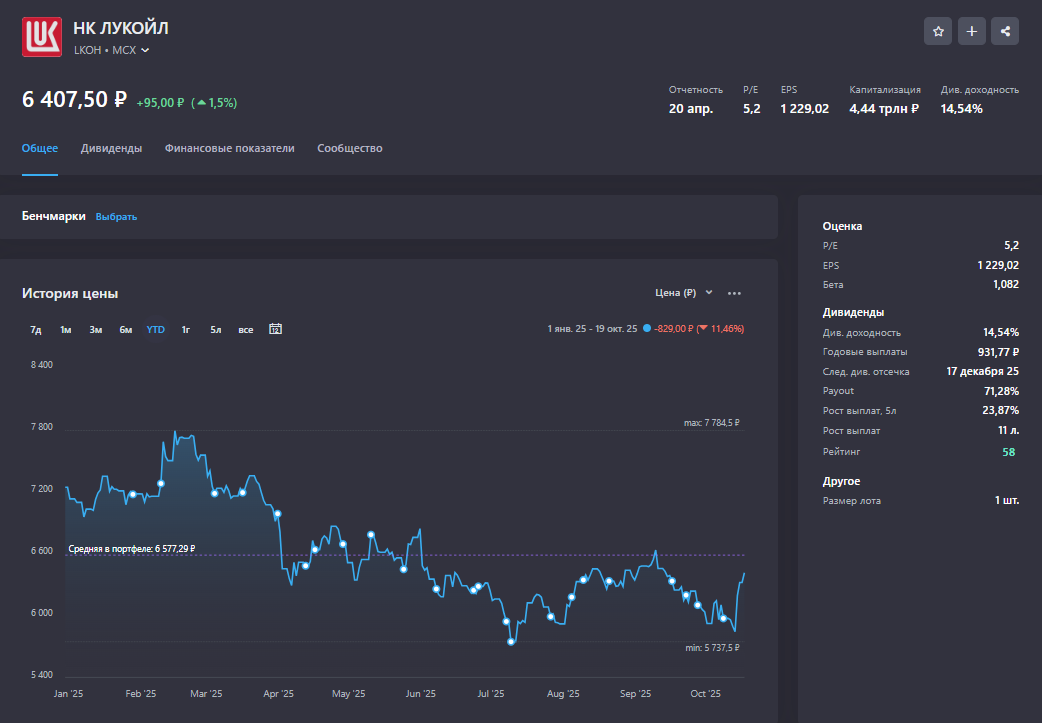 1. ЛУКОЙЛ $LKOH