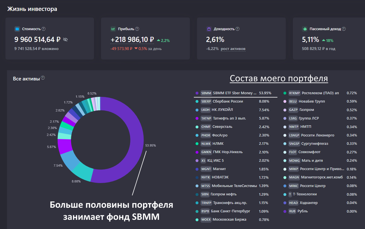 На данный момент я использовал уже многие приветственные ставки у ряда банков и больше высокую доходность они мне не дают. Поэтому, я перевёл свои свободные деньги на брокерский счёт и вложил их в фонд SBMM от СБЕРа с доходностью около 20% годовых до вычета налогов: