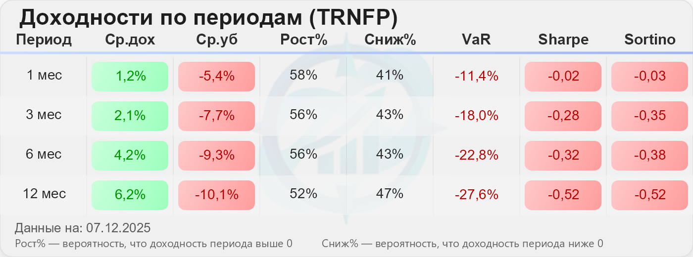 В итоге TRNFP — это история для терпеливых инвесторов, которые умеют спокойно переживать неприятные просадки ради мощных дивидендов и низких мультипликаторов. Если задача — “просто получать деньги от зрелой нефтегазовой машины”, то бумага подходит
