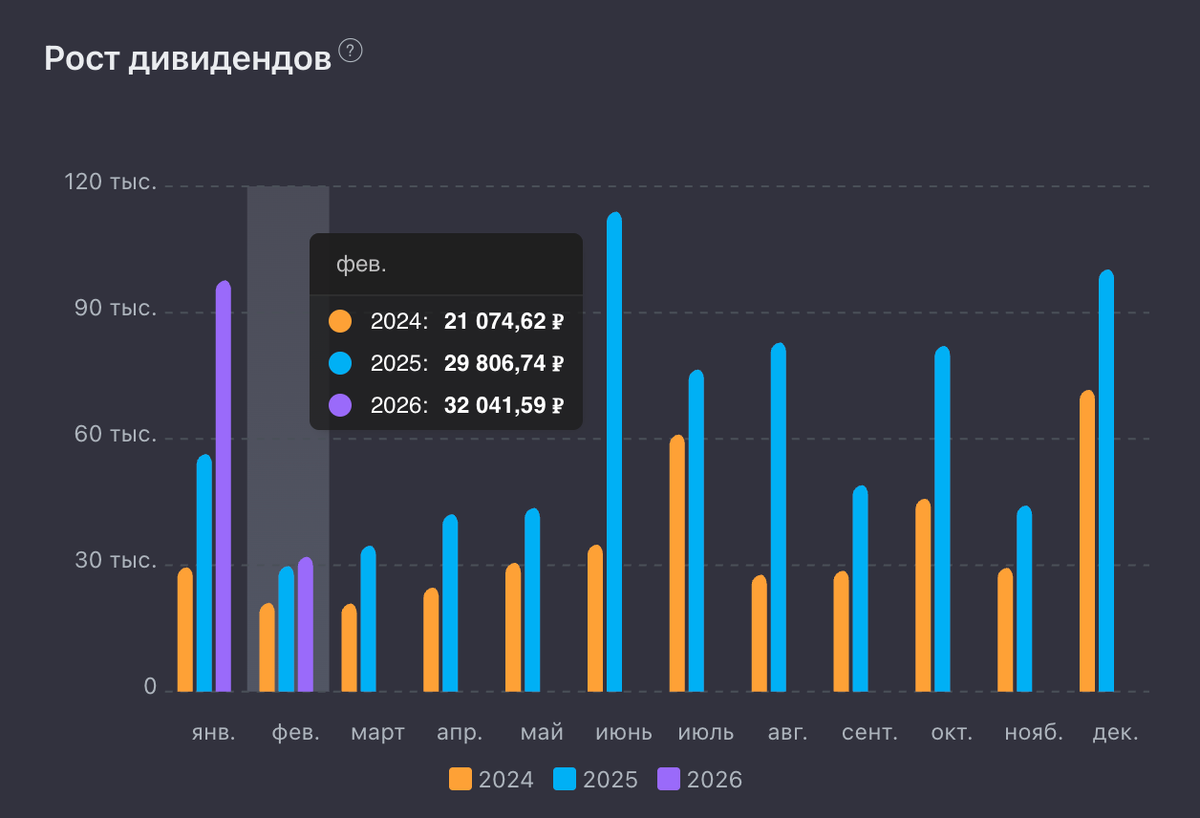Дивидендов в феврале нет, остаются купоны и рента. Февраль станет одним из самых грустных месяцев года. В январе вышло почти 100 тысяч, в феврале примерно вдвое меньше.