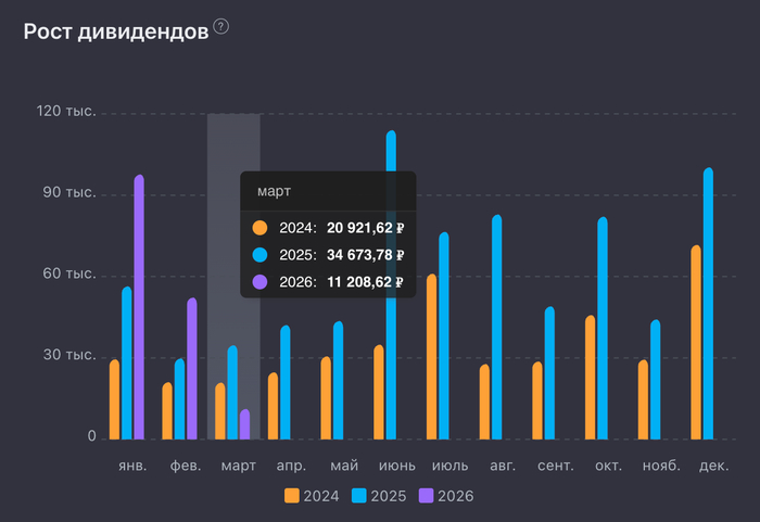 Дивидендов в марте нет, остаются купоны и рента. Март продолжает тренд февраля и станет одним из самых грустных месяцев года. В феврале вышло 52 тысячи, в марте примерно столько же, видимо.