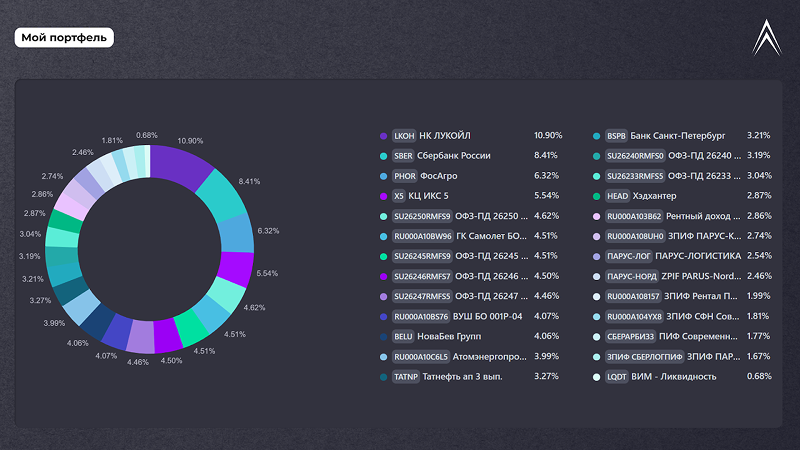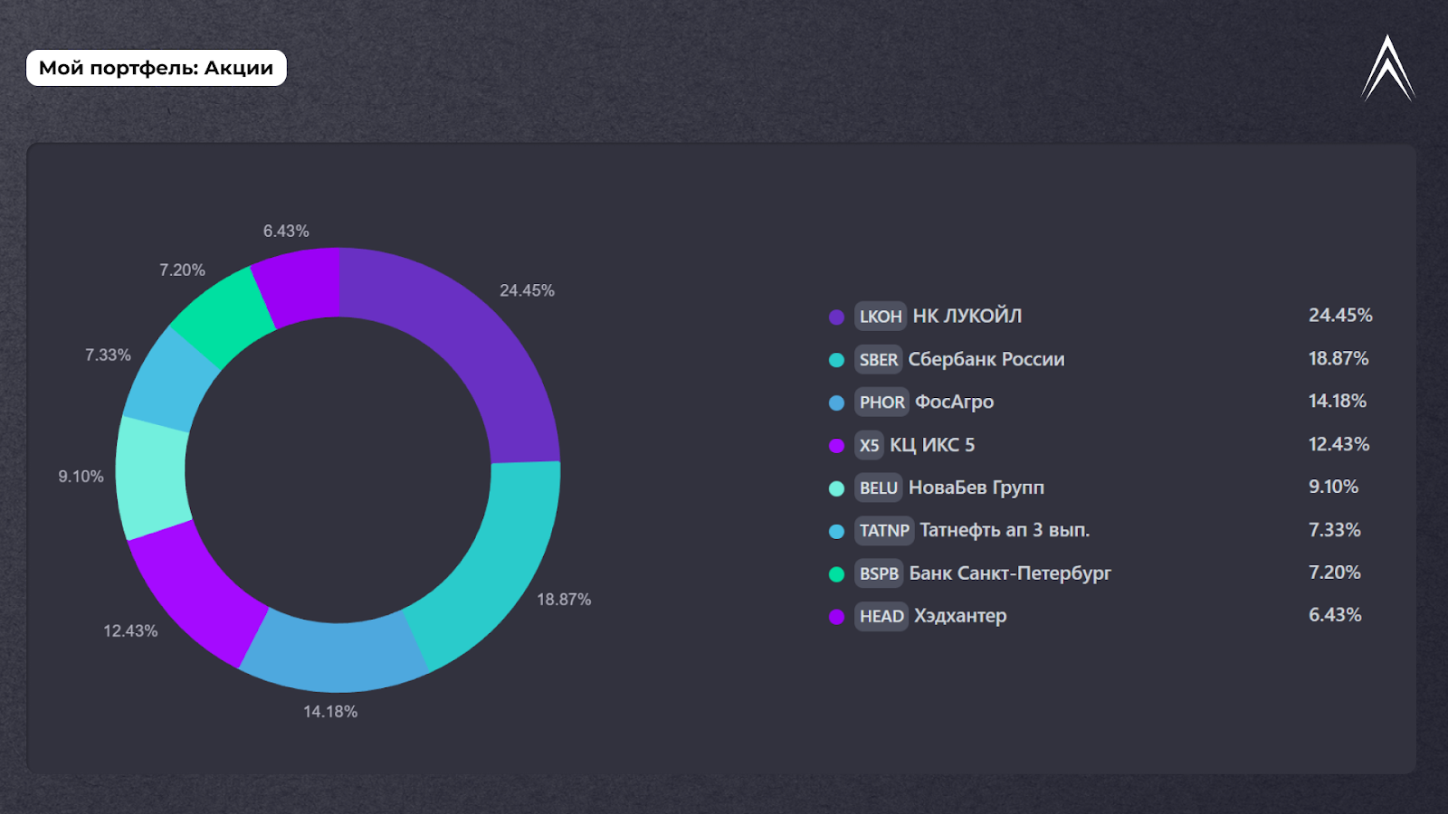 В портфеле уже есть: Сбер, ФосАгро, ЛУКОЙЛ, Новабев, БСПб-ао, Татнефть-ап, Хэдхантер, X5. Всего 8 штук, и я считаю, что на данном этапе пока что хватит. Сейчас важнее усиливать лучшее, а не коллекционировать все подряд.