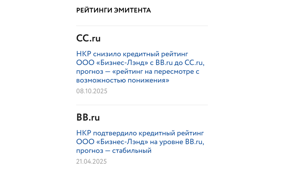 Бонус. Есть такая контора — Бизнес Лэнд, она уже на днях дефолтнулась, рейтинг был BB. Не судьба. А ведь такая участь ждёт всех этих ребят. На очереди Монополия. Просто в качестве напоминания.